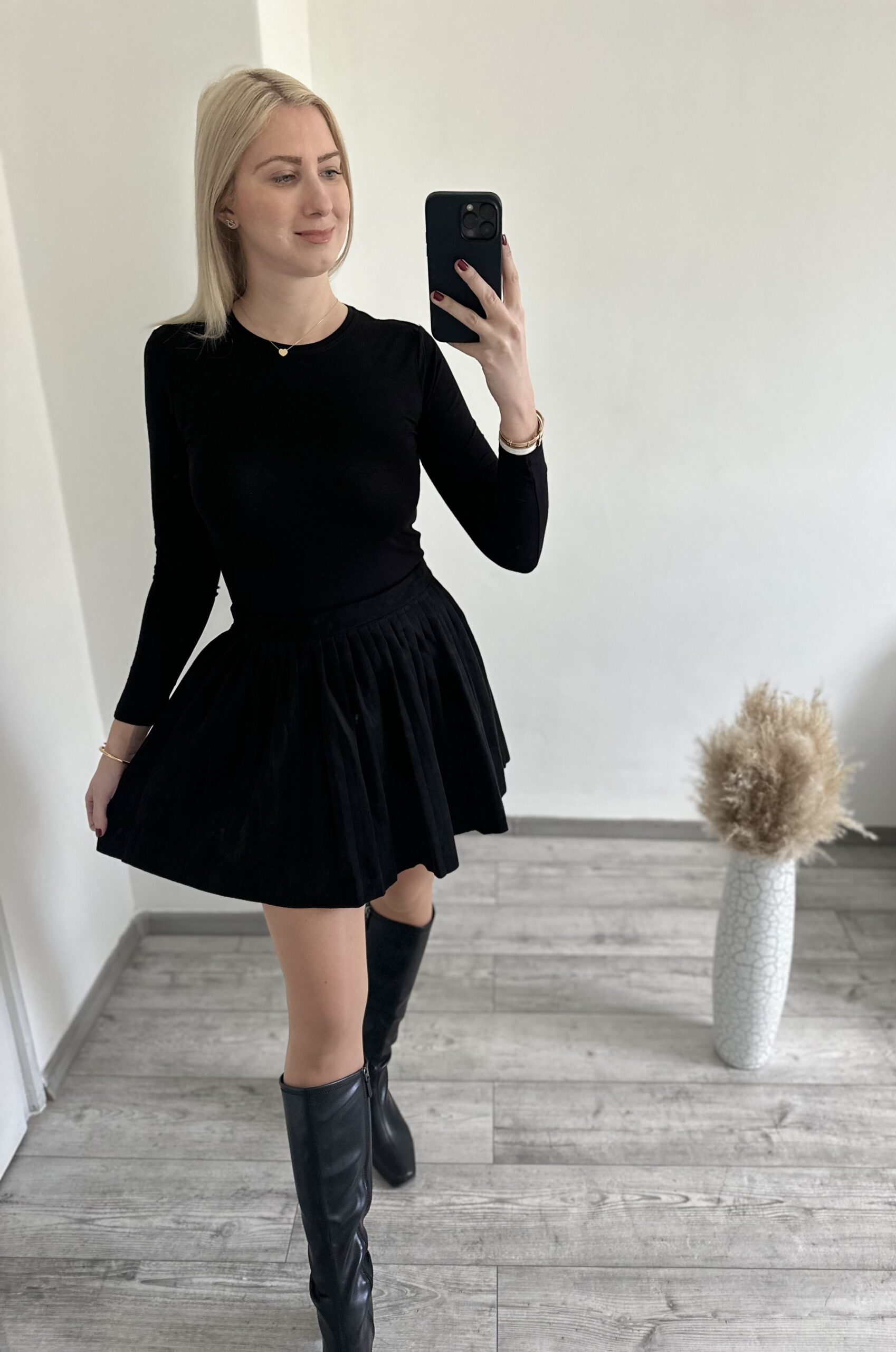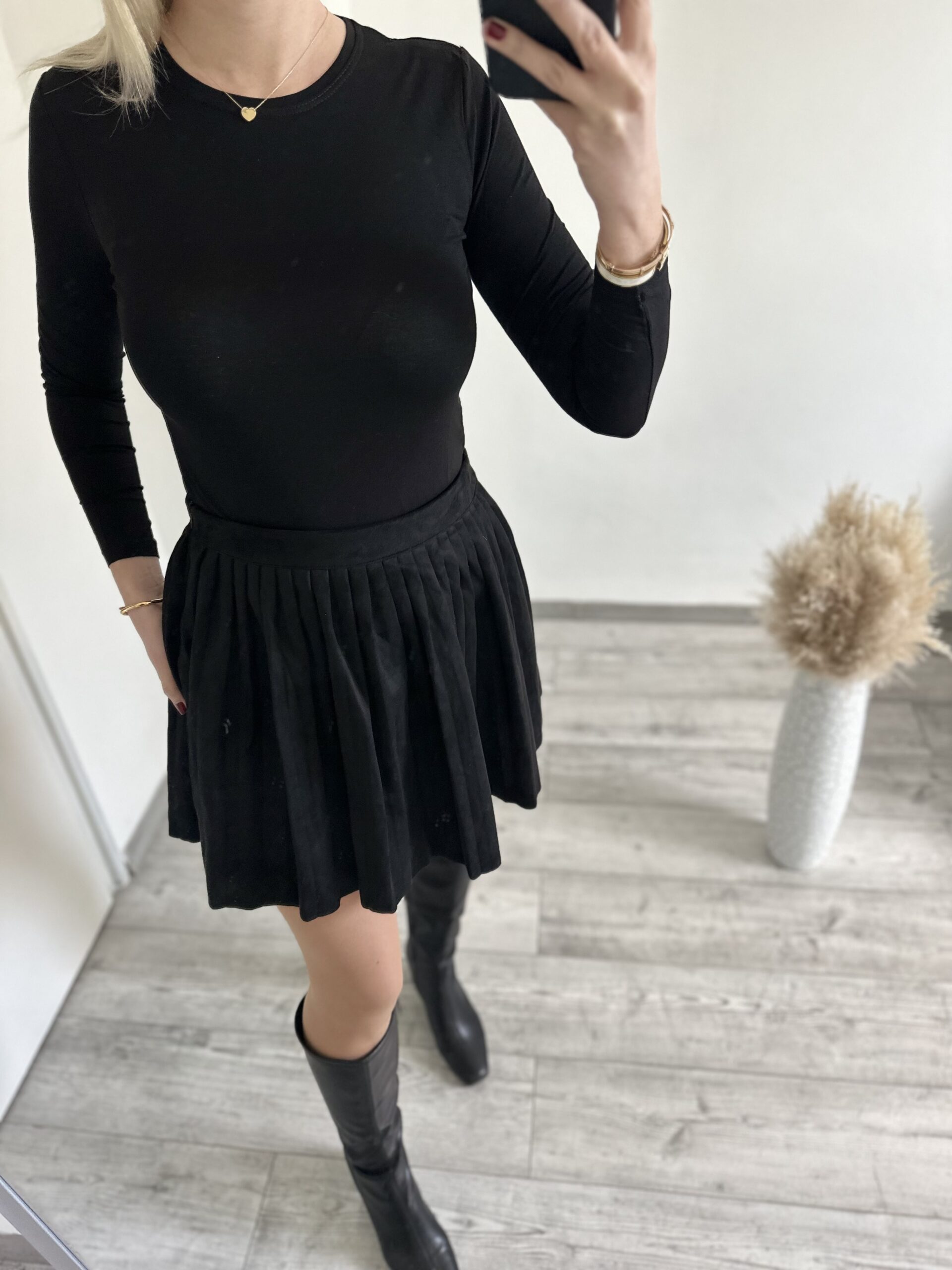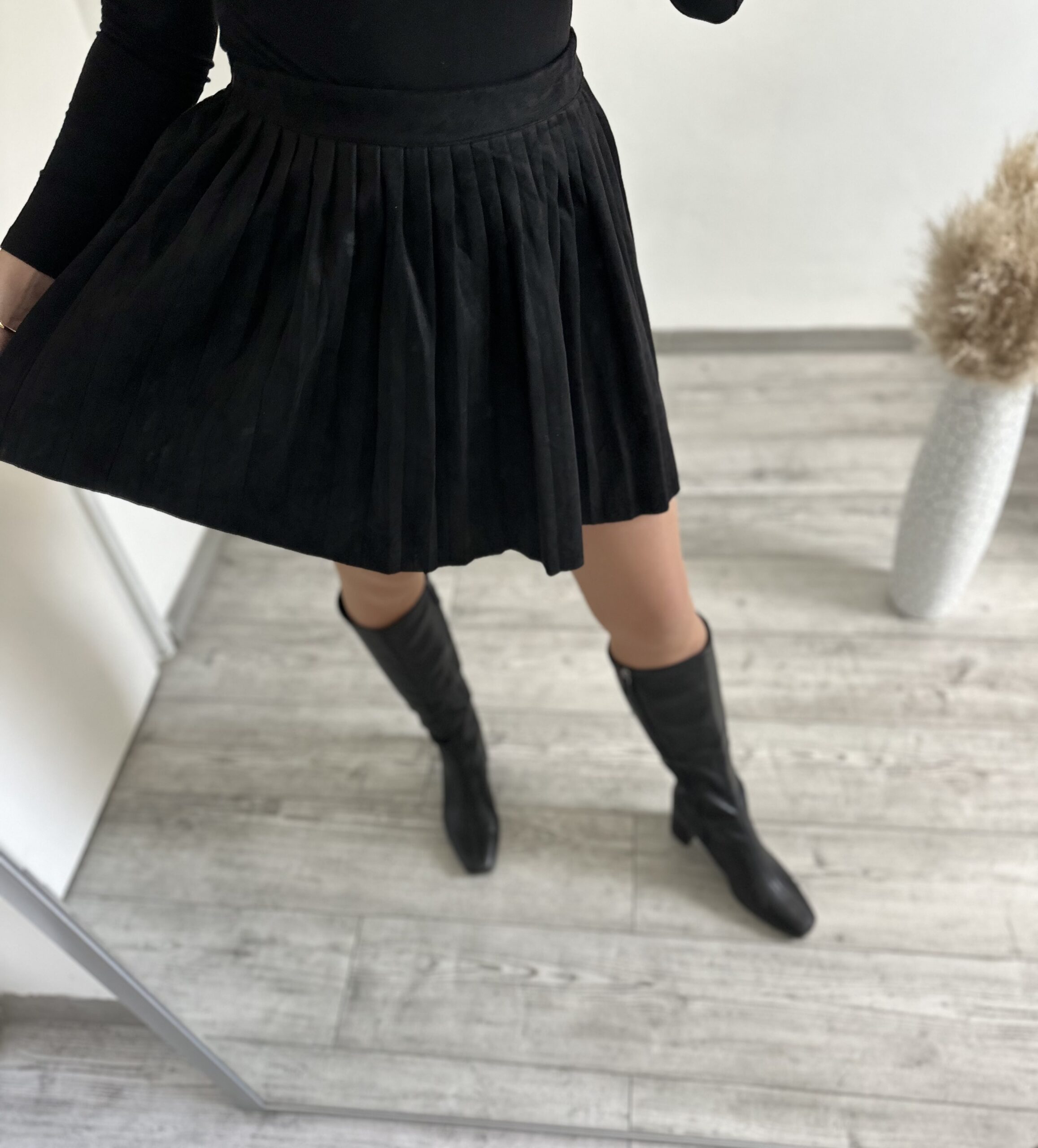 Velúr anyagú oldalt cipzáros szoknya.