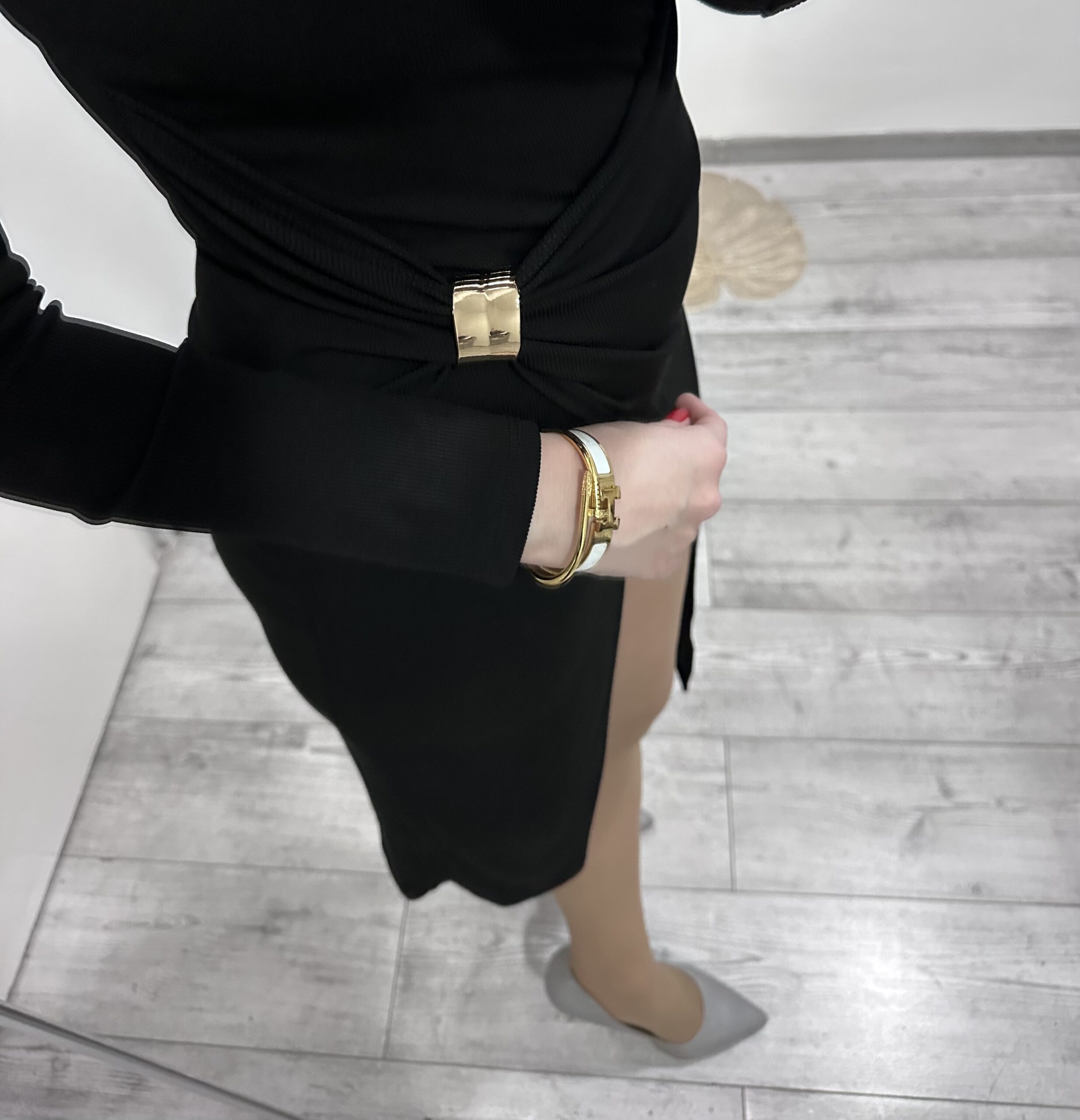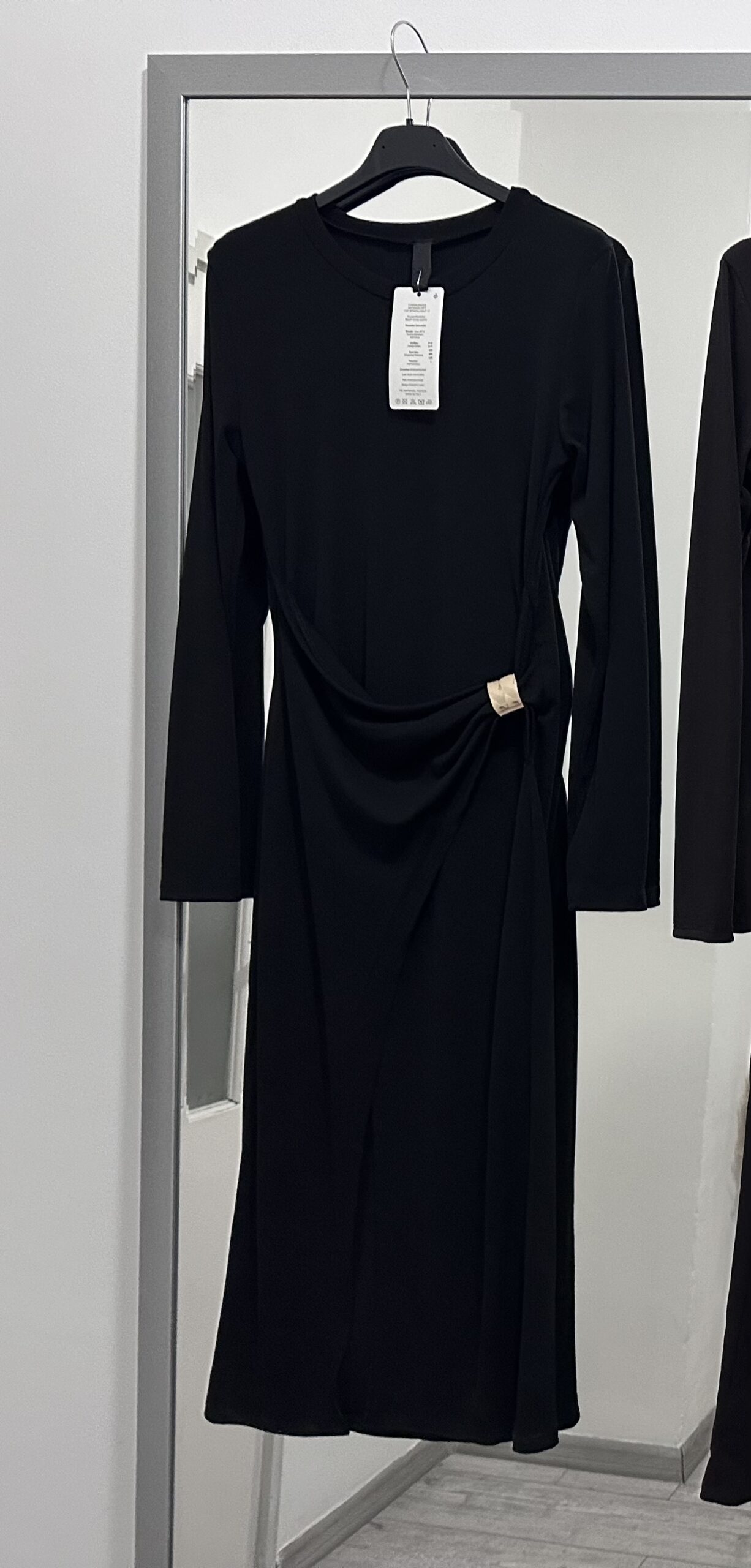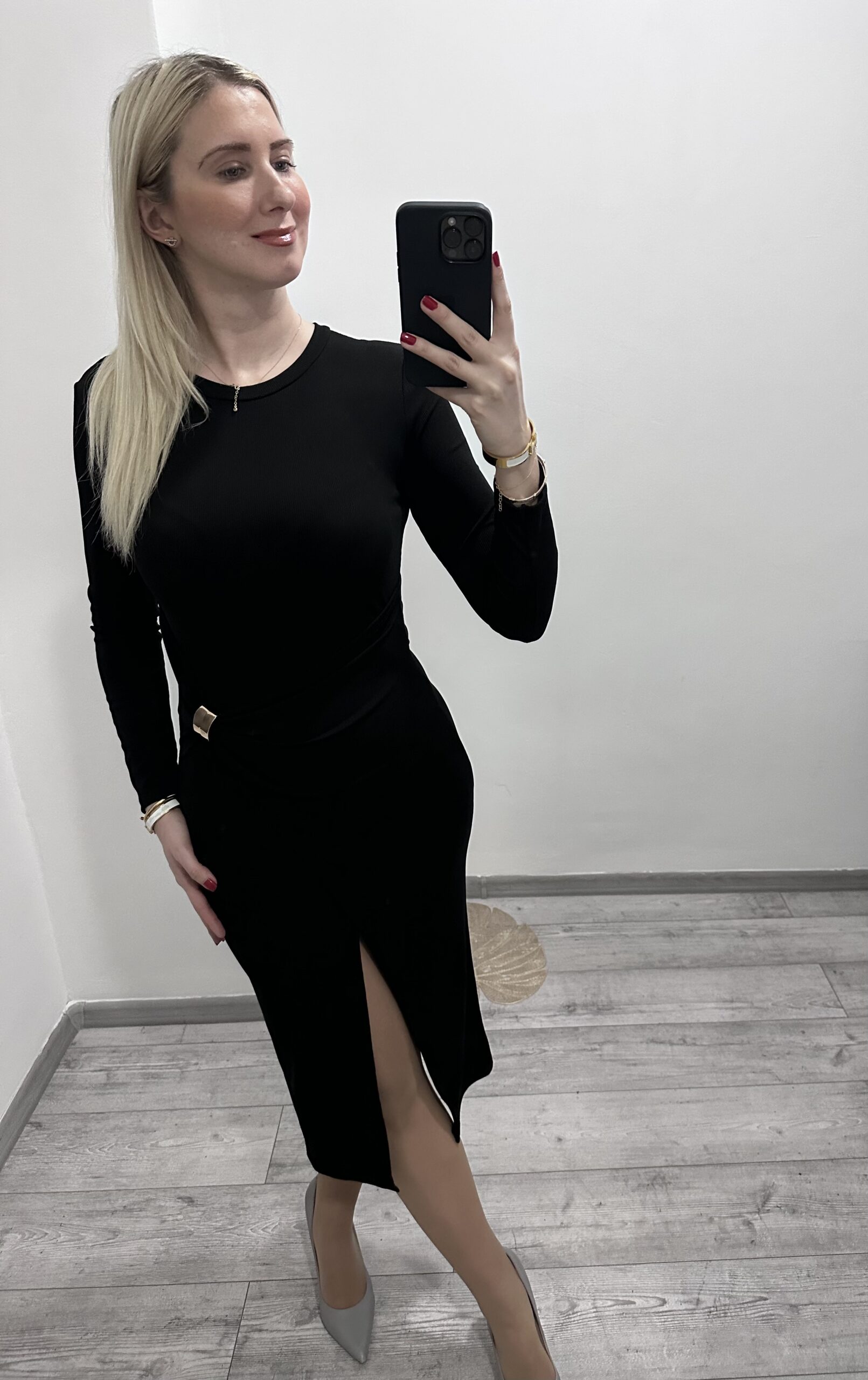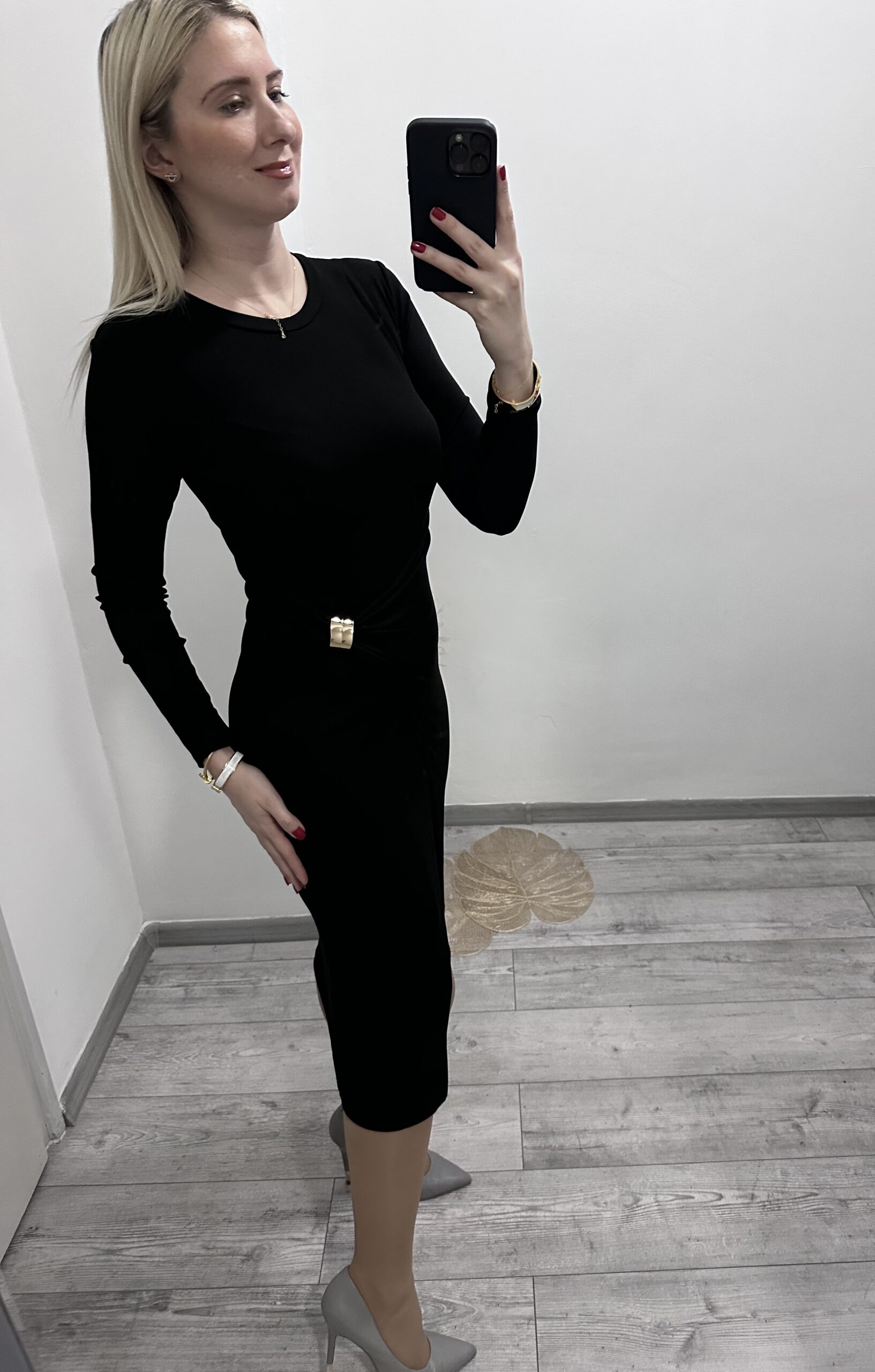 Rugalmas bordázott pamutos alakot követő fekete színű ruha.
